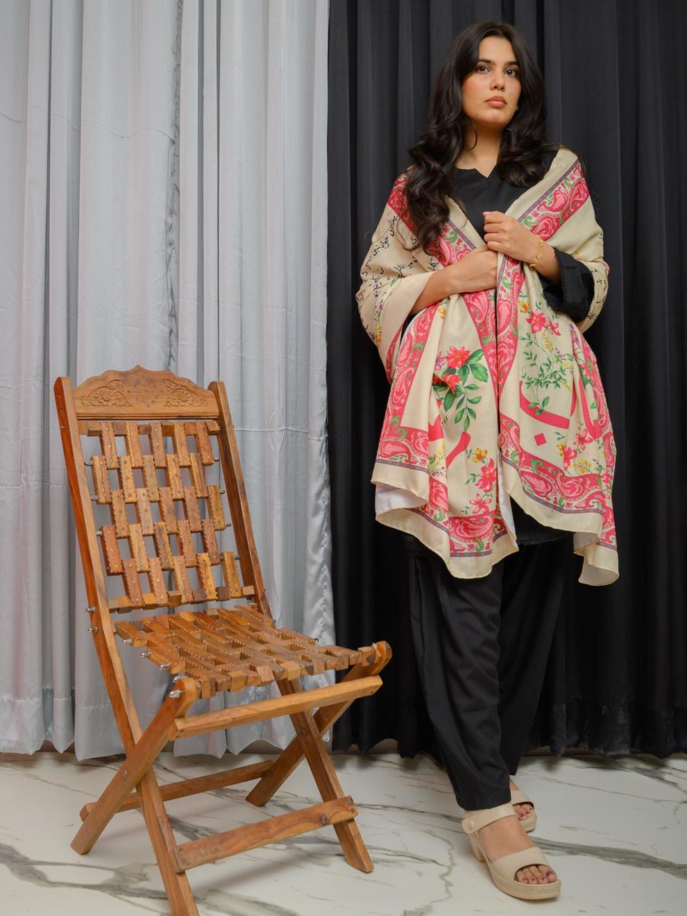 Phool Aur Ghalib Silk Dupatta (Peach)